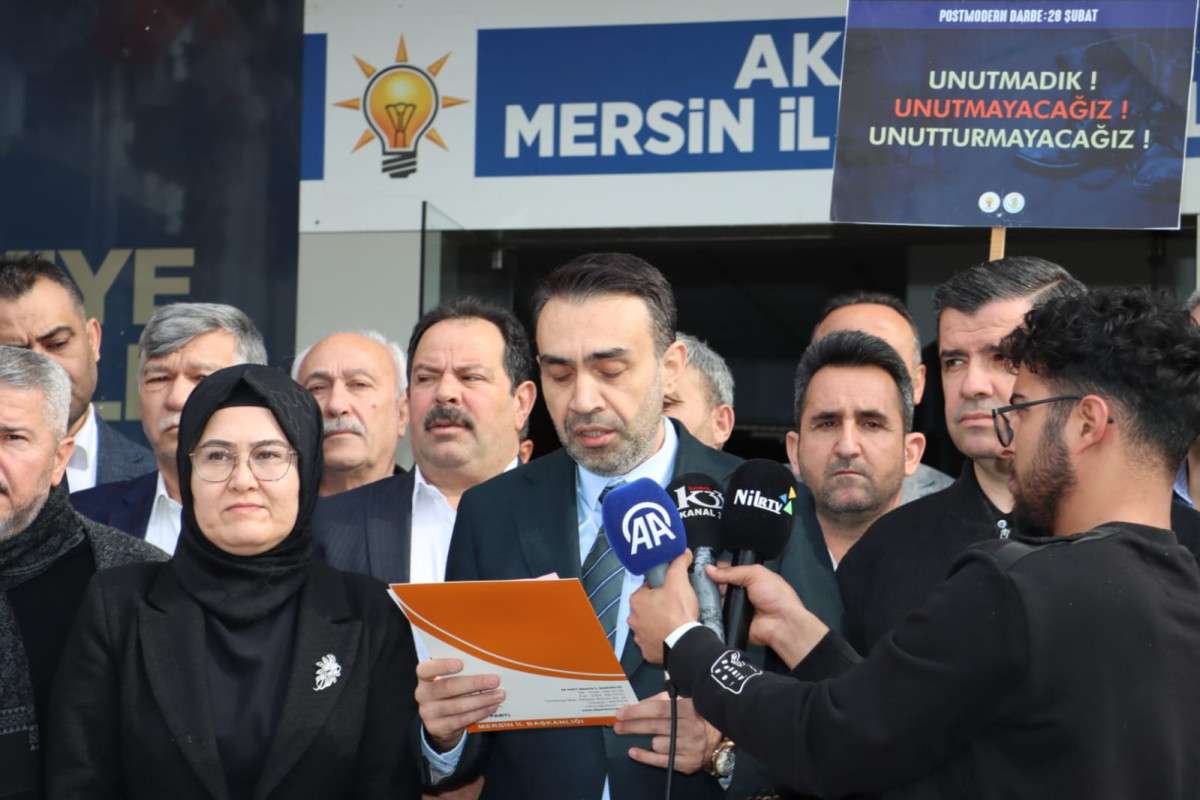 Ak Parti Mersin İl Başkanı İl binasında partililerle birlikte yaptığı basın açıklamasında şu ifadelere yer verdi; Bugün 28 Şubat Darbesinin 28. yıl dönümünde darbe ve darbecilik zihniyetini bir kez daha kınamak için bir araya geldik.