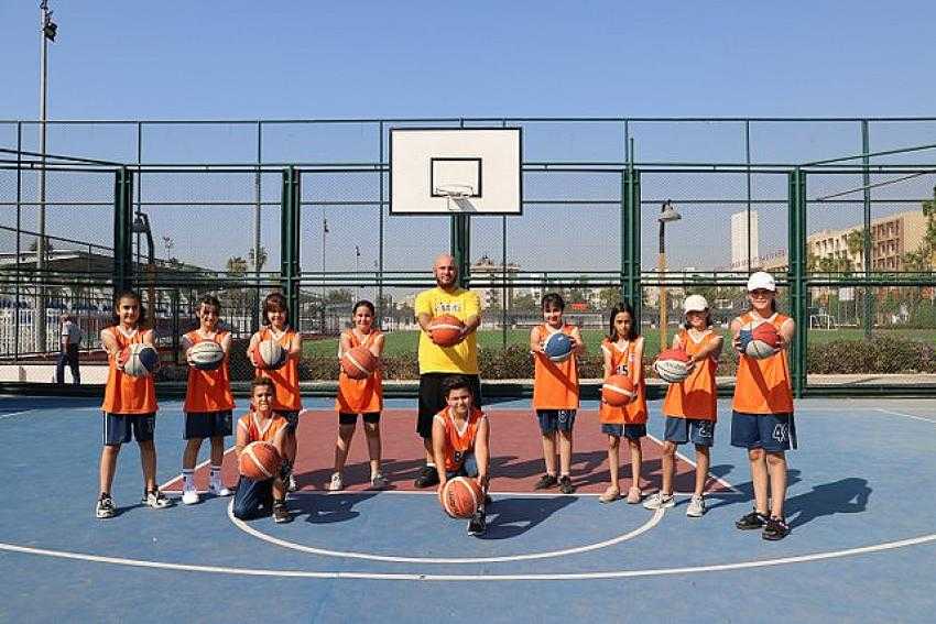 Akdeniz Belediyesi Basketbol Yaz Okulu'nda haftanın 5 günü, günde 3 saat olmak kaydıyla 150 çocuğa eğitim veriliyor.