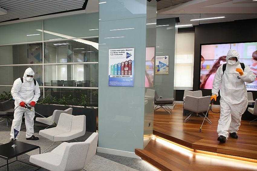 Çevre Koruma ve Kontrol Müdürlüğü’ personelinden saha için oluşturulan mobil ekipler; insan yoğunluğu nedeniyle risk taşıyan ve talep gelen kurum ve kuruluşlarda, koronavirüse karşı ilaçlama hizmeti sunuyor.