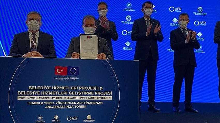 Aralarında Mersin Büyükşehir Belediyesi’nin de olduğu belediyelerin; yeni atık su, içme ve yağmur suyu ile katı atık projelerini içeren İLBANK ve Yerel Yönetimler Alt Finansman Anlaşması Ankara’da Cumhurbaşkanı Yardımcısı Fuat Oktay, Çevre ve Şehircilik Bakanı Murat Kurum, Avrupa Birliği Delegasyonu Türkiye Başkanı ve Büyükelçisi Nikolaus Meyer-Landrut ve Dünya Bankası Ülke Direktörü Auguste Tano Kouame’nin katılımıyla imzalandı.