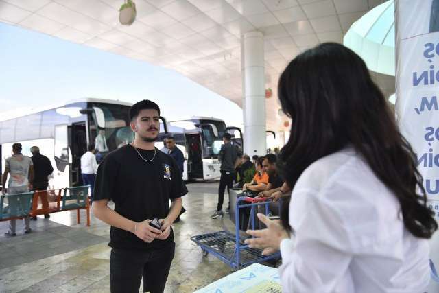 style="text-align:justify"> style="color:inherit; font-size:12pt"> href="https://www.habermeclisi.net/ara?q=Mersin Büyükşehir Belediyesi " class="text-dark font-weight-bold" target="_blank">Mersin Büyükşehir Belediyesi Sosyal Hizmetler Daire Başkanlığı Eğitim Hizmetleri Şube Müdürlüğü’nde Rehber Öğretmen olarak görev yapan Duygu Çeviker, otogarda verdikleri hizmeti anlatarak, “Üniversite tahsili için başka şehirlerden Mersin’e gelen öğrencileri MEŞOT’ta kurulu standımızda karşılıyoruz. Büyükşehir Belediyesi’nin kız ve erkek öğrenci yurtlarından, Çamaşır Kafe, Mahalle Mutfakları, Sıcak Çorba İkramı, Ulaşım ve Sosyal Tesis, MERCİ Öğrenci Danışmanlık Merkezi ile Kariyer Merkezi hizmetlerini öğrencilere anlatıyoruz. Büyükşehir Belediyesi olarak tüm bu projelerle, öğrencilerimizin yanında oluyoruz. Mersin gerçekten bir öğrenci kenti haline geldi. Bizler de MEŞOT’ta kurduğumuz stantta, tüm öğrencilerimize bu bilgilendirmeleri yapıyor ve gidecekleri lokasyona ulaşımlarını ücretsiz olarak sağlıyoruz” ifadelerini kullandı.