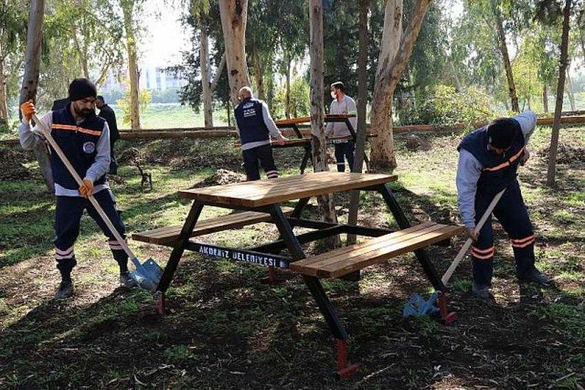 Zaman içinde zarar gören, ancak kullanımı mümkün olan oturma gruplarını da tadilattan geçirip boyayan park ve bahçeler müdürlüğü ekipleri, piknikçi aileler için de ormanlık alana yeni piknik masaları yerleştirdi.