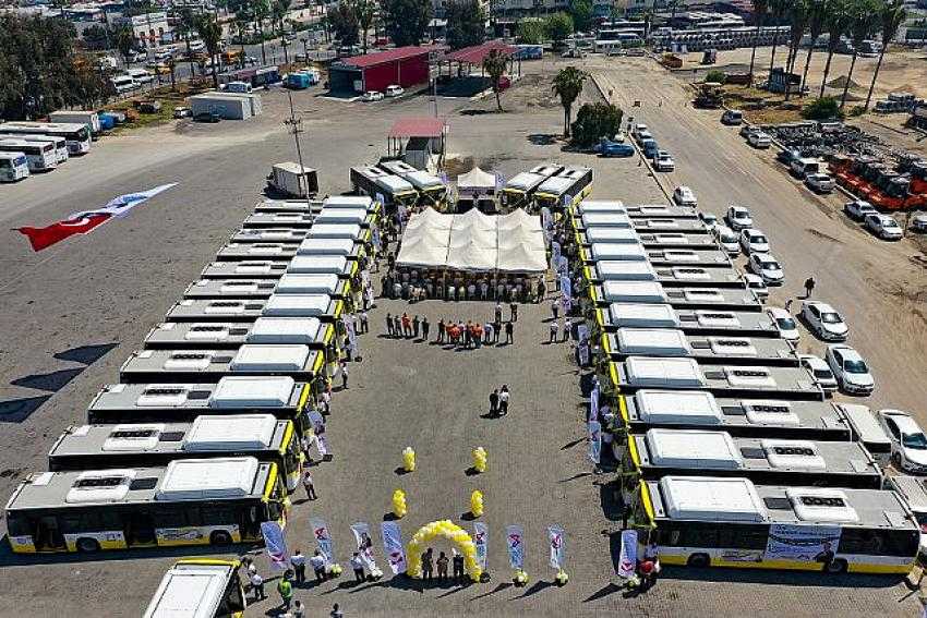 Mersin Büyükşehir Belediyesi Ulaşım Dairesi bünyesine kazandırılan CNG yakıtlı 87 yeni otobüsün 30 araçlık ilk partisi kente ulaştı. Büyükşehir Belediye Başkanı Vahap Seçer’in katılımıyla anahtar teslim töreni yapılan ‘Sarı Limonlar’, Adanalıoğlu’ndan Tece’ye kadar çok sayıda noktada sefere başladı. Vatandaşların yoğun ilgisiyle karşılanan ‘Sarı Limonlar’ tam kapanma sürecinde de sokağa çıkma muafiyeti bulunan vatandaşlar için seferlerini sürdürecek.