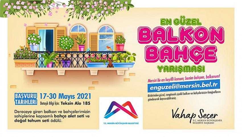 Büyükşehir Belediyesi, ‘Mersin’de en keyifli konum; benim bahçem, balkonum!’ sloganıyla ‘En Güzel Bahçe/Balkon Yarışması’ düzenliyor. Yarışmayla çevre bilincini ve çevre sevgisini artırmak, vatandaşların sosyal ilişkilerinin taze tutulmasını sağlamak, halkın çevre düzenleme ve kent peyzajına yönelik ilgisini teşvik etmek ve Mersin’de yeşil dokunun artırılması amaçlanıyor.