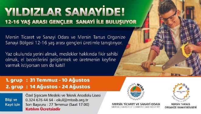 Mersin Ticaret ve Sanayi Odası (MTSO) ve Mersin Tarsus Organize Sanayi Bölgesi (MTSOB) ortaklığında hazırlanan Yıldızlar Sanayide projesiyle 12-16 yaş arası gençler sanayi ile buluşuyor.