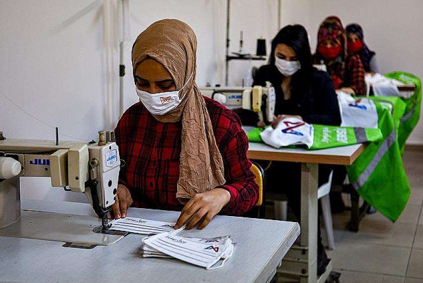 İş kıyafet talepleri, maske ve çeşitli siparişleri alan kadınlar, parça başına aldıkları ücretle hem ev ekonomilerine katkı sağlıyor hem de üretime katılıyor. Çeşitli firmalardan gelen talepleri de karşılayan kadınlar birlikte güçlenerek eğitim aldıkları yeri adeta bacasız bir fabrikaya dönüştürdü.