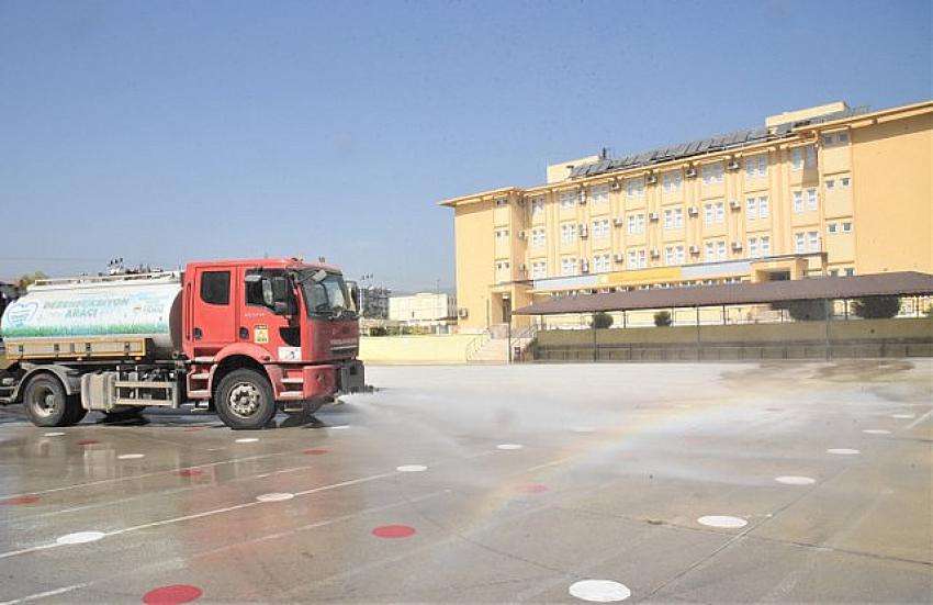 Toroslar Belediyesi, 12 Ekim Pazartesi günü başlayacak olan yüz yüze eğitim öncesinde ilçe genelinde bulunan okulları Koronavirüse karşı temizleyerek dezenfekte ediyor.