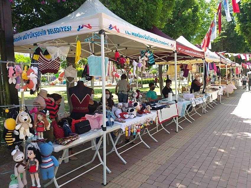 Tarsus kent merkezinde yemyeşil ortamı ile uğrak yerlerden biri olan Kültür Park içerisinde açılan stantlarda, el işinden yöresel yiyeceklere, hediyelik eşyadan duvar süslerine kadar ürünleriyle yer alan 100 kadın üretici ürünlerini satma olanağı buluyor.