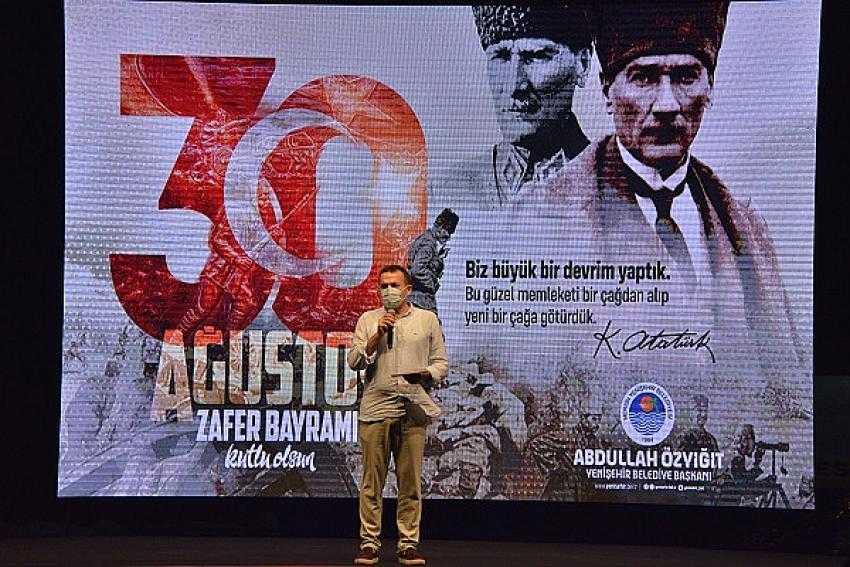 Ulu Önder Gazi Mustafa Kemal Atatürk ve silah arkadaşları ile tüm şehitlerin anısına bir dakikalık saygı duruşu ve ardından İstiklal Marşı’nın okunmasıyla başlayan programın açılış konuşmasını Yenişehir Belediye Başkanı Abdullah Özyiğit yaptı. 30 Ağustos Zafer’inin bugün bile tüm ezilen halklar için umut kaynağı olduğunu ifade eden Başkan Özyiğit, “Bugün Mersinli hemşehrimizin şehit haberini derin üzüntüyle öğrendik, şehidimize Allah'tan rahmet, kederli ailesine ve sevenlerine sabır ve başsağlığı diliyorum. 98 yıl önce Büyük Taarruz'da olduğu gibi bugün de bu güzel vatanı korumak için canlarımızı feda ediyoruz. Başta Ulu Önder Gazi Mustafa Kemal Atatürk ve silah arkadaşları olmak üzere, ebediyete intikal etmiş tüm şehitlerimizin anısına sizleri bir dakikalık saygı duruşunu gerçekleştirdik. Coşkuyla ve gururla kutladığımız 30 Ağustos Zafer Bayramı, bağımsızlık mücadelesi veren bir halkın tüm imkânsızlıklara karşı zafer kazandığı ve işgalci güçleri Anadolu’dan söküp attığı günü simgelemektedir. Büyük bir inanç ve özgürlük arzusuyla, Gazi Mustafa Kemal Atatürk'ün önderliğinde elde edilen bu ilham verici zafer ve canlarını bağımsızlığa siper edenler, dünyanın tüm ezilen halkları için bugün bile bir umut kaynağıdır.” dedi.